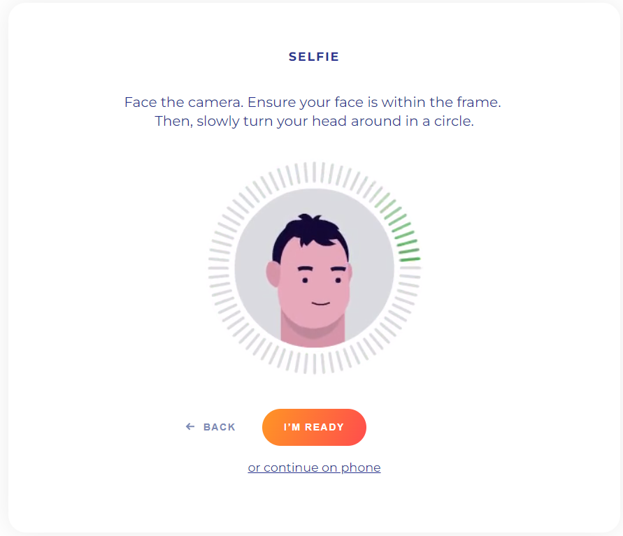 5. Click "I'm ready" and follow the on-screen instructions to complete the live verification step